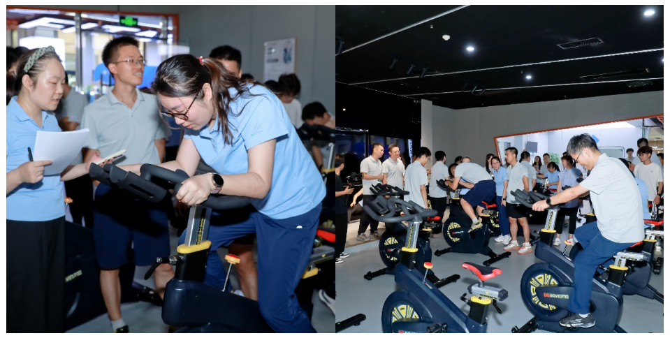 接下來,在職工健身中心內(nèi),“科研鐵人健康同行”團隊挑戰(zhàn)賽激情展開。各基層分工會組織的17支隊伍展開智慧與力量的角逐:科研接力跑中疾馳的身影,動感單車上飛旋的車輪,仰臥起坐時繃緊的脊梁……每一項挑戰(zhàn)都需3名隊員(含至少1名女隊員)緊密協(xié)作。賽場上擊掌相慶的默契,此起彼伏的助威吶喊,將現(xiàn)場運動氛圍推向高潮。